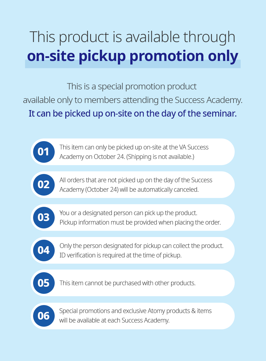 - For more information, please contact our Customer Support at (253)946-2344 or email us at atomy_usa@atomypark.com.